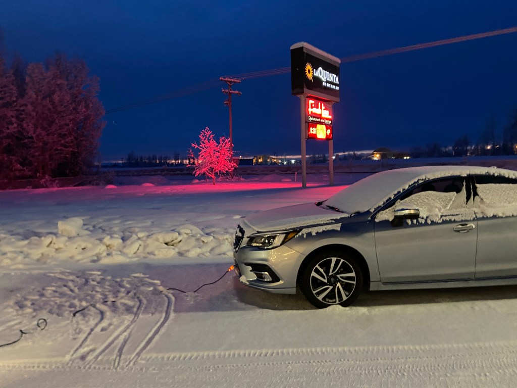 My Fairbanks rental car, plugged in for the night.
