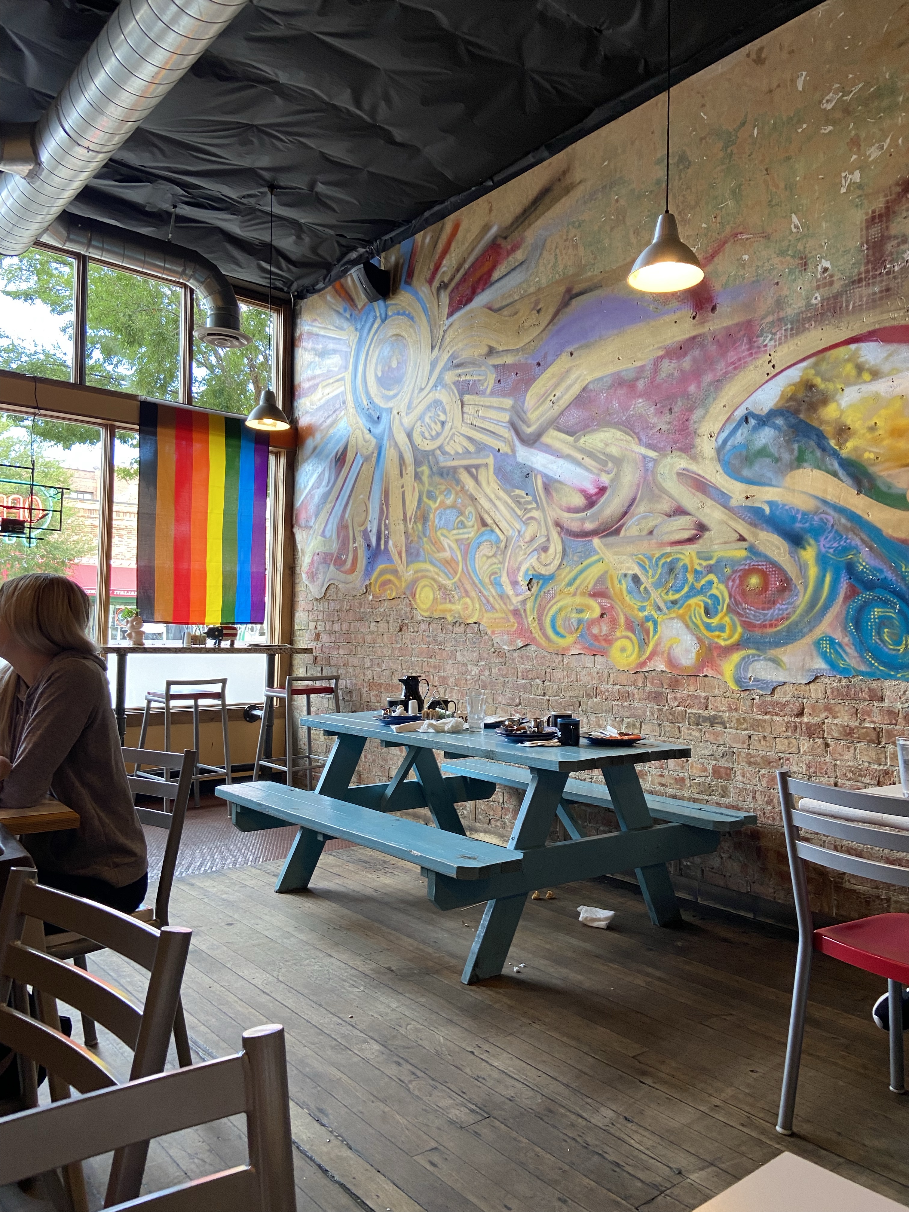 We rerouted into Utah to stay fit the night in Ogden. I inadvertently booked us in a hotel that was overrun with a College Football team complete with entourage. The lobby was madness, but they were polite. Next morning we grabbed breakfast and hit the road for Wyoming.