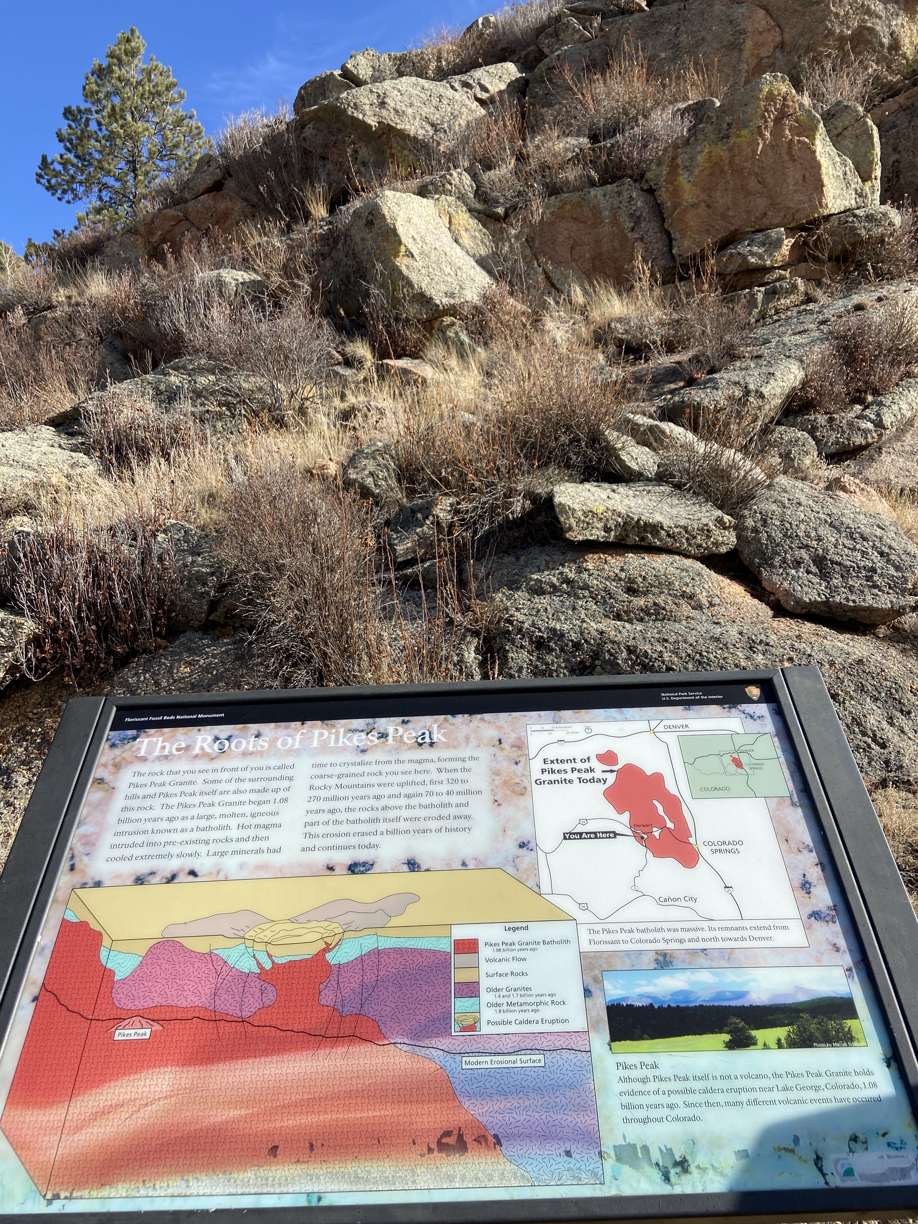 Stop 1 on the trip was the Florissant Fossil Beds National Monument. The site contains a few moderate loop interpretive trails with some really cool petrified tree stumps, and several longer nature hikes. We opted for the longer interpretive loop and enjoyed the ample sunshine. Unfortunately the archaeology museum was closed when we visited.