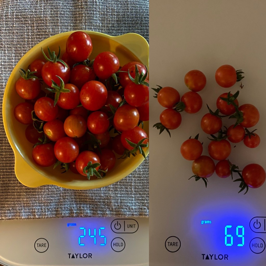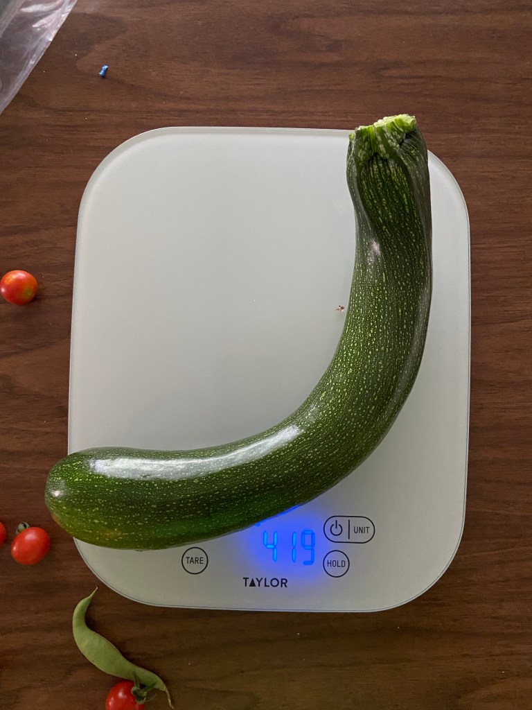 2 muncher cukes2 silver slicersCurvy zukeLovely zukeMany cherry tomatoesLots of biquinho peppers1 beanBunches of chard