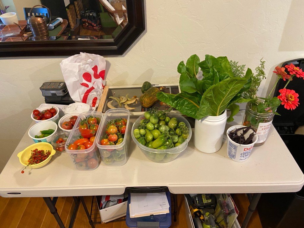 Zucchini season is over, with the romanesco producing several weird shaped final fruits. I still ate one of them and it was tasty! Butternut and honeynuts are coming out. Several little late season honeynuts are on the vine and I’m giving them a little more time.
