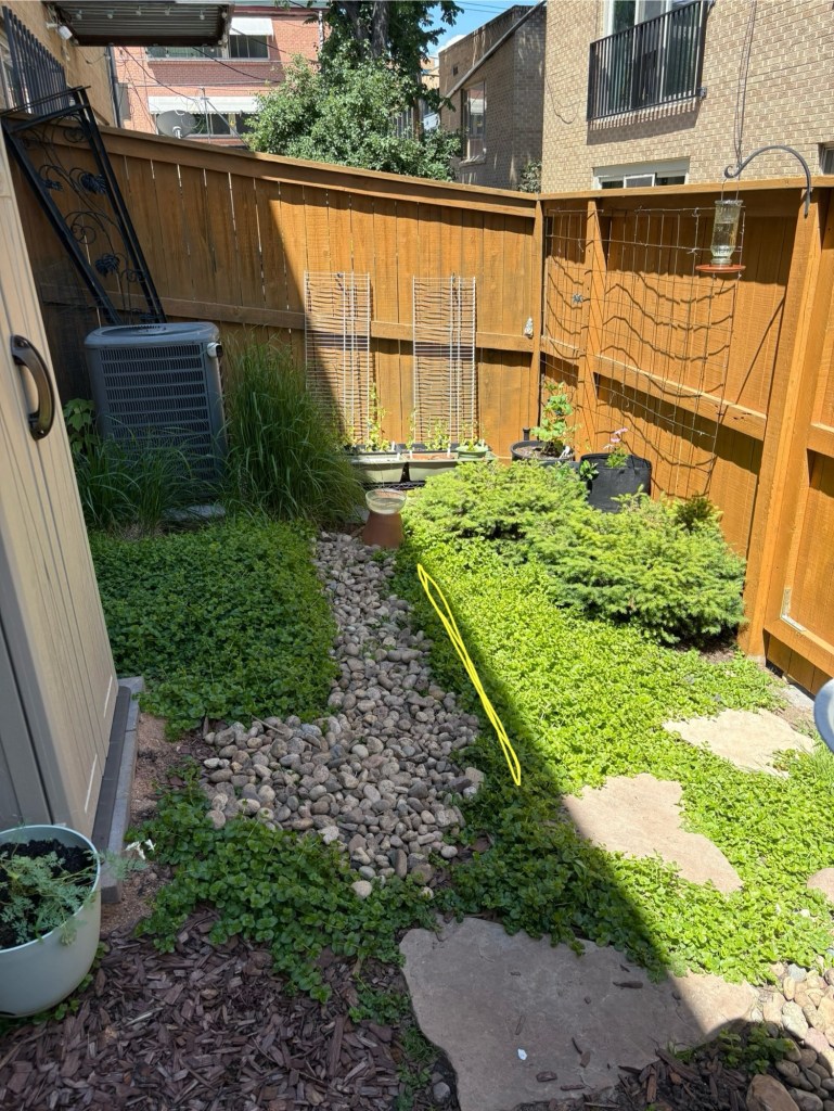 Also acquired several buckets of free river rock from a Denverite converting their rockscape back to something green. Works perfectly for my path over to my corner. Before it was just trampled ground cover and a little muddy.