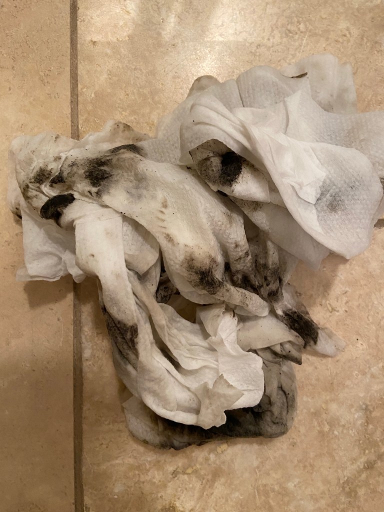 The amount of black sludge I removed from the crevices in my front load washer gasket would shock and appal you, so I’ll just show you some of the aftermath. it was so bad I first thought I was removing part of the gasket itself, but it was just really stubborn crud. Barf.
