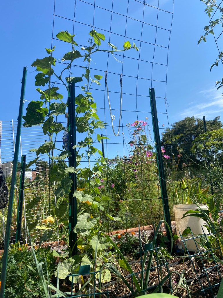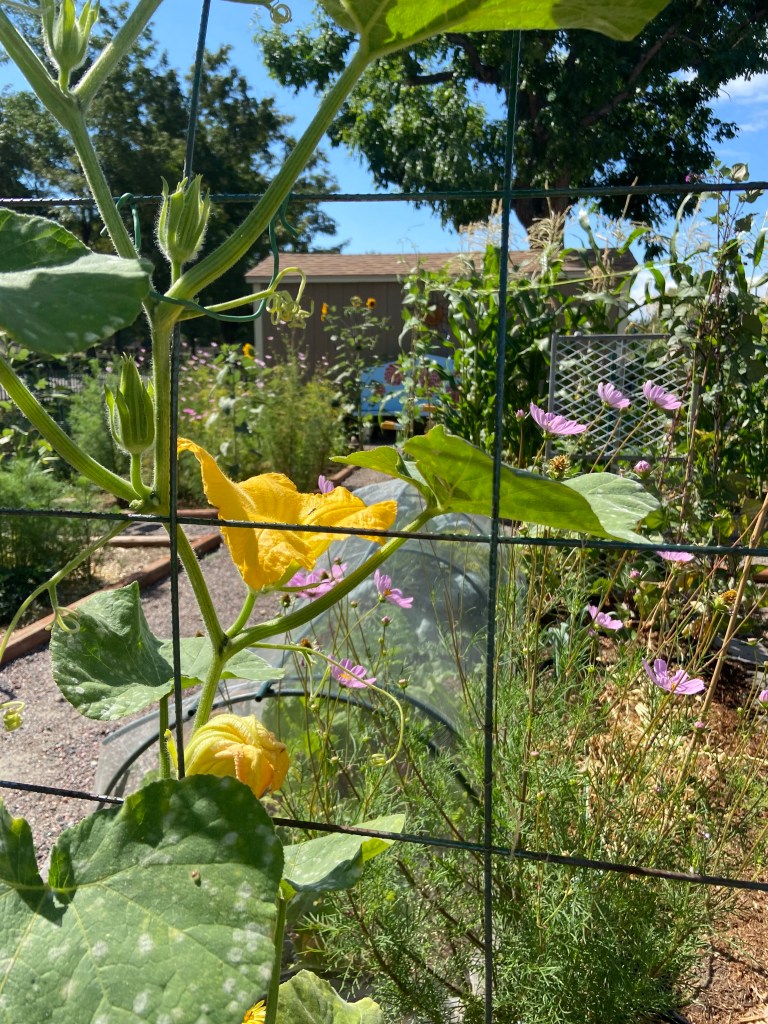 I started these too early last year. I started them too late this year. I may get one or two fully developed squash this year. three of the four at least seem fairly healthy. The luffa is a weird dwarf plant for some reason and will definitely not produce useful gourds before season’s end.