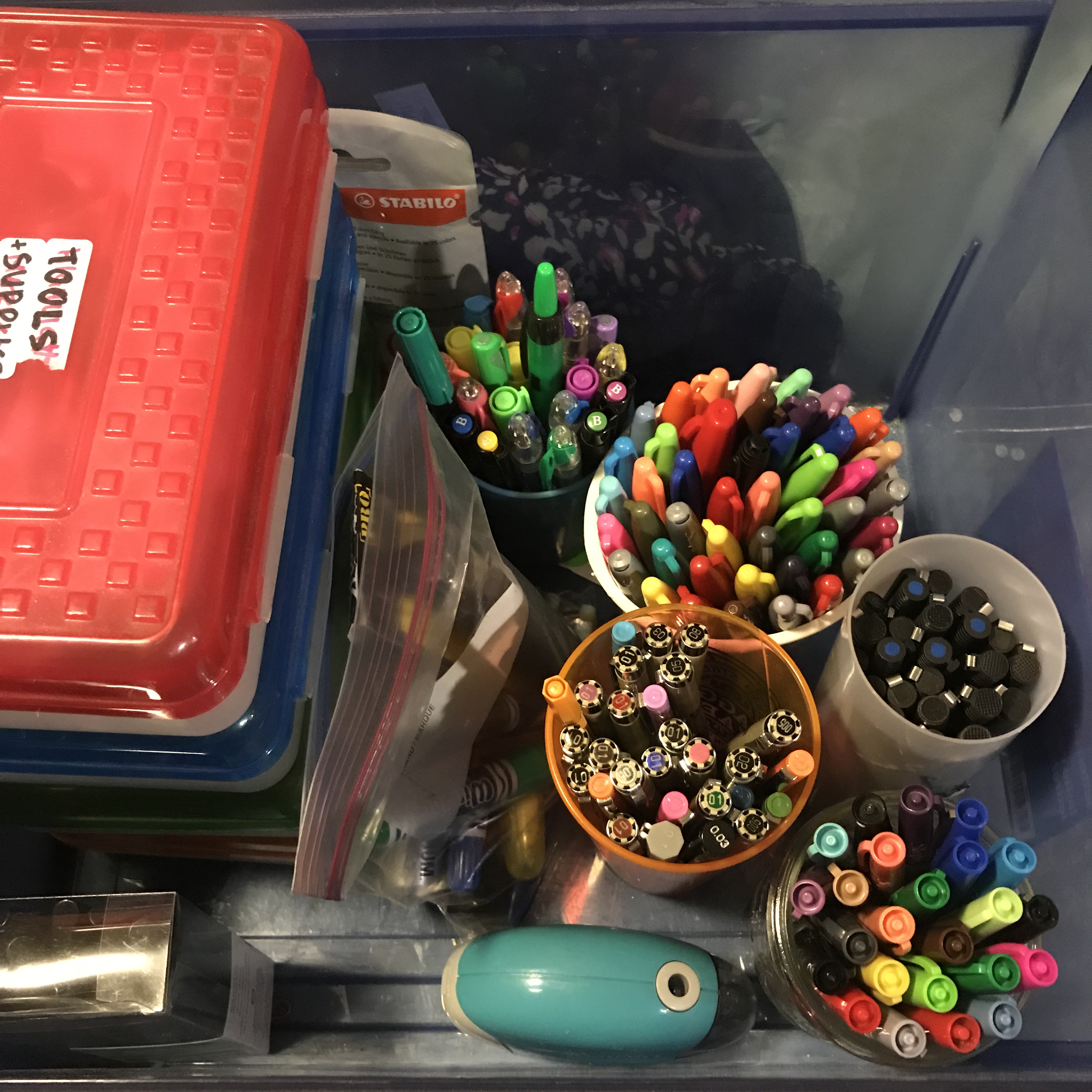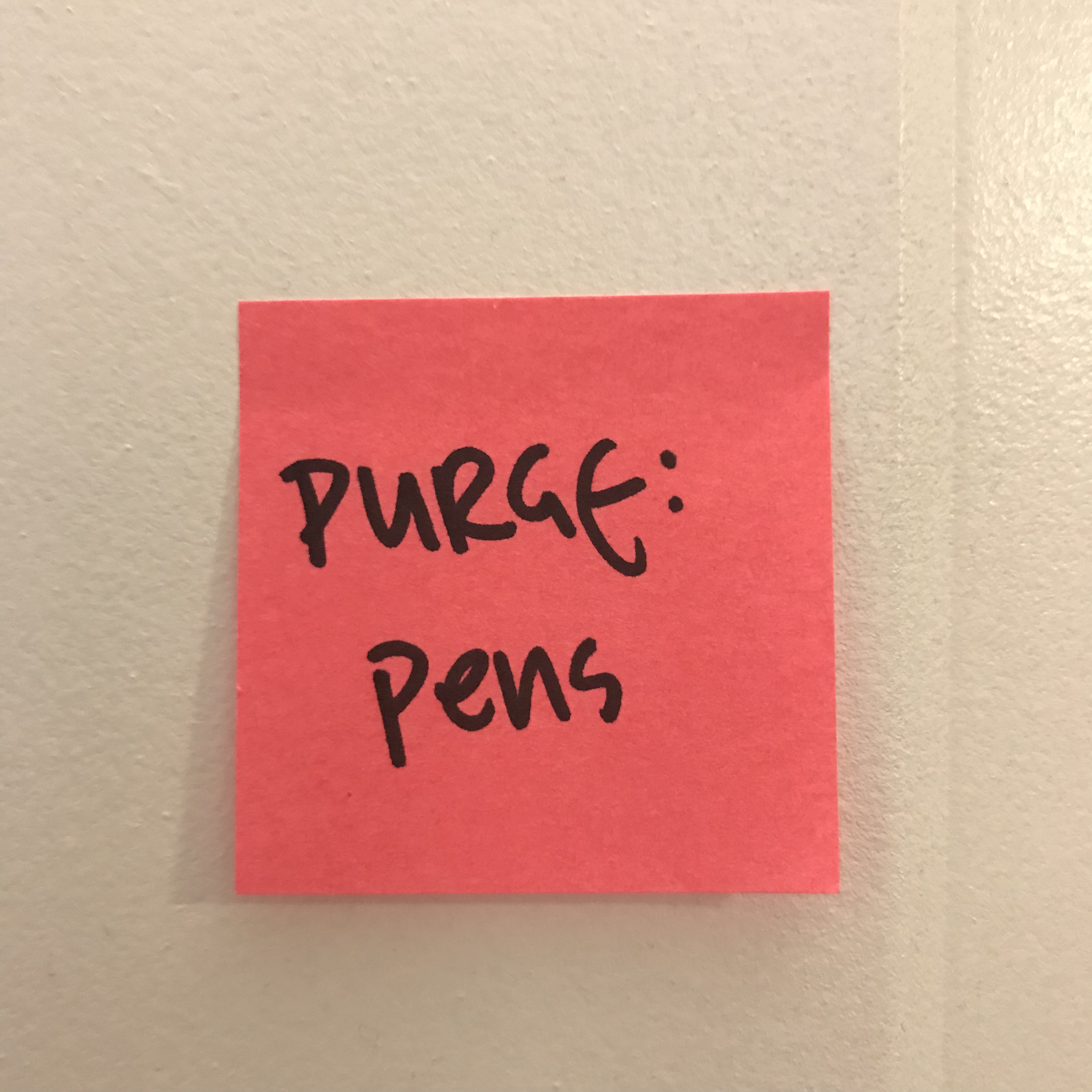 I’m addicted to buying pens. I’m also really particular about them, and my mind changes inevitably after purchasing a large quantity of my “favorite”. As such I have a large stockpile I’ve been reducing bit by bit every time I move. I’m down to one file box full of pens and markers (not counting paint pens, isolated for safety, or colored pencils).