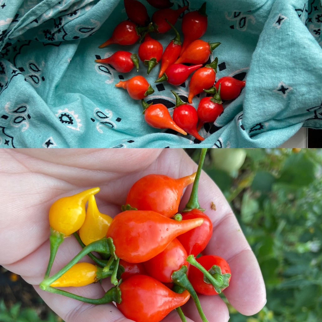 Not pictured, more tomatoes, biquinho peppers, and chard.